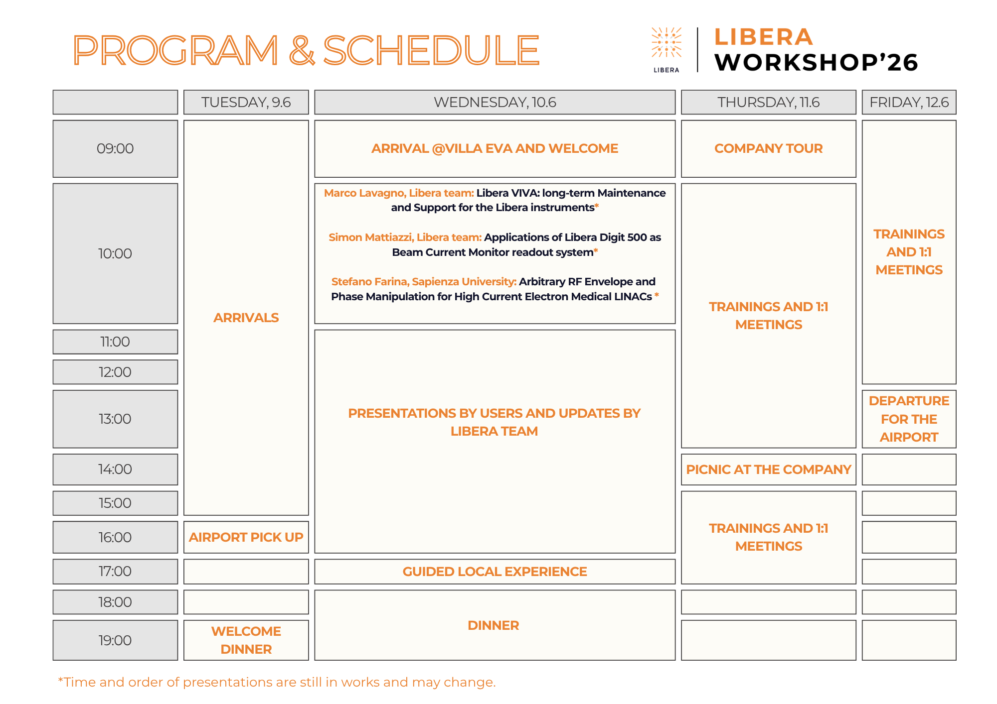 The Libera Workshop is one of the main opportunities to meet and exchange knowledge with experts in beam diagnostics and data acquisition systems for particle accelerators. Participants learn about new applications and digital signal processing techniques based on the newly available technologies and have the chance to present the status of their projects.
