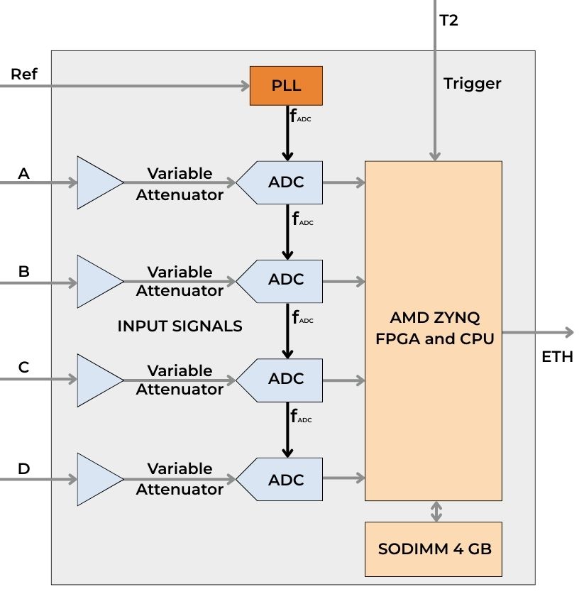 In parallel, with a 500 MHz sampling rate, RF reference locking, low noise and wide dynamic range, it also serves as a powerful starting platform for a general-purpose 4-channel digitzer to which various tailored solutions can be added or functionalities extended. This way, users domain knowledge is combined with our expertise of high-performance instrument design and turning raw signals into meaninful data.
