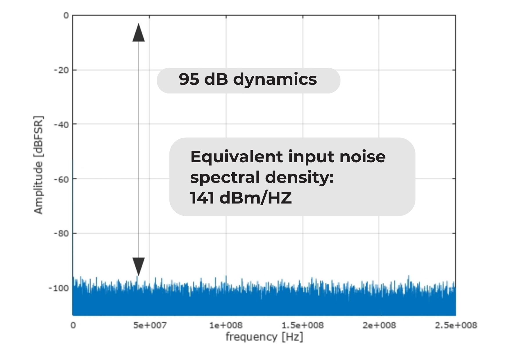 The dynamic range of the system is over 90 dB.